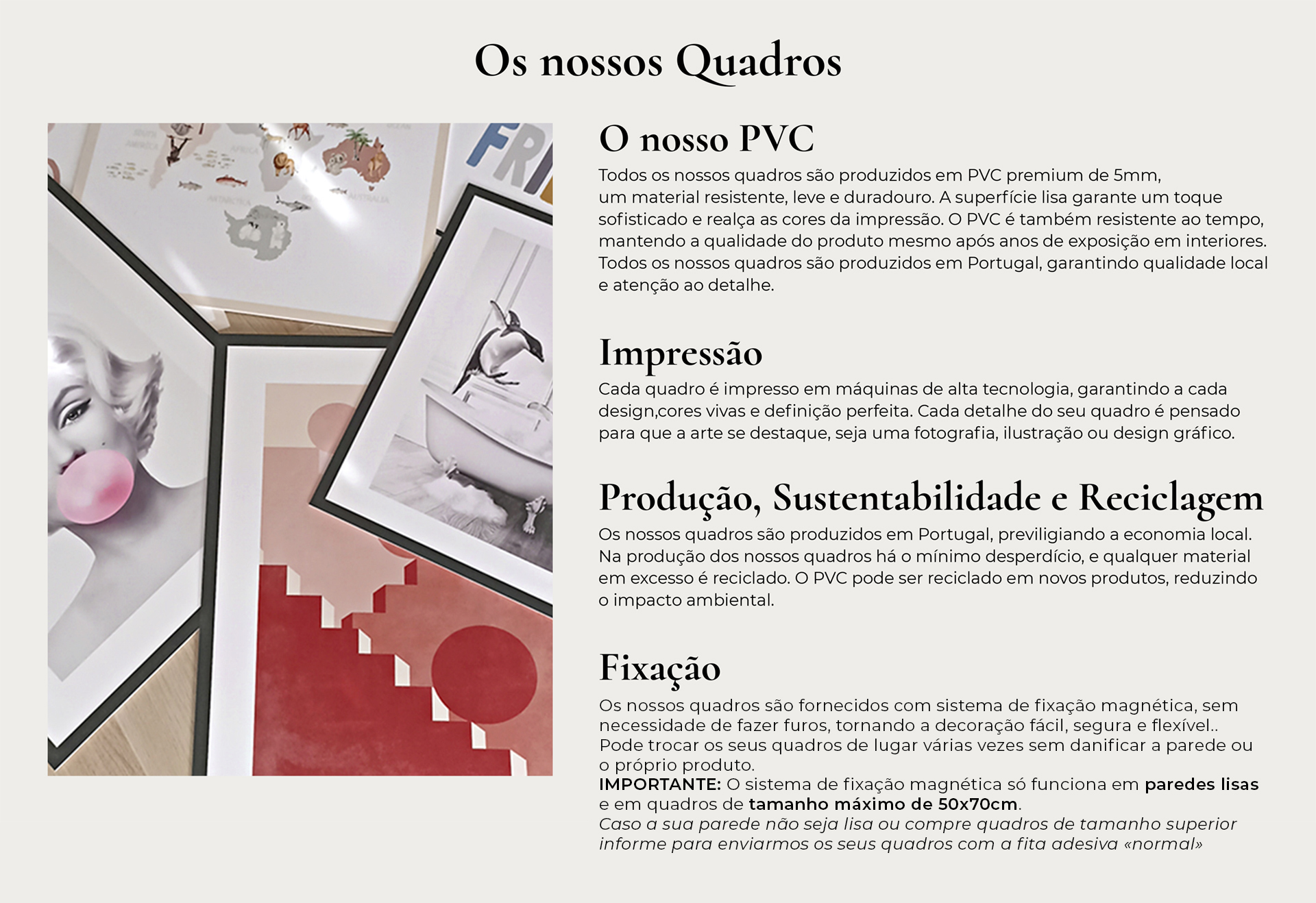Depois de ver o vosso perfil no Instagram, decidi arriscar e comprar. Fiquei maravilhada! adorei a qualidade dos quadros e a maneira fácil como coloquei na parede. Fiquei muito agradada. Obrigado