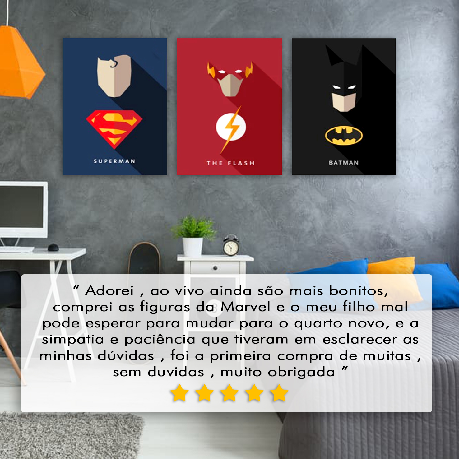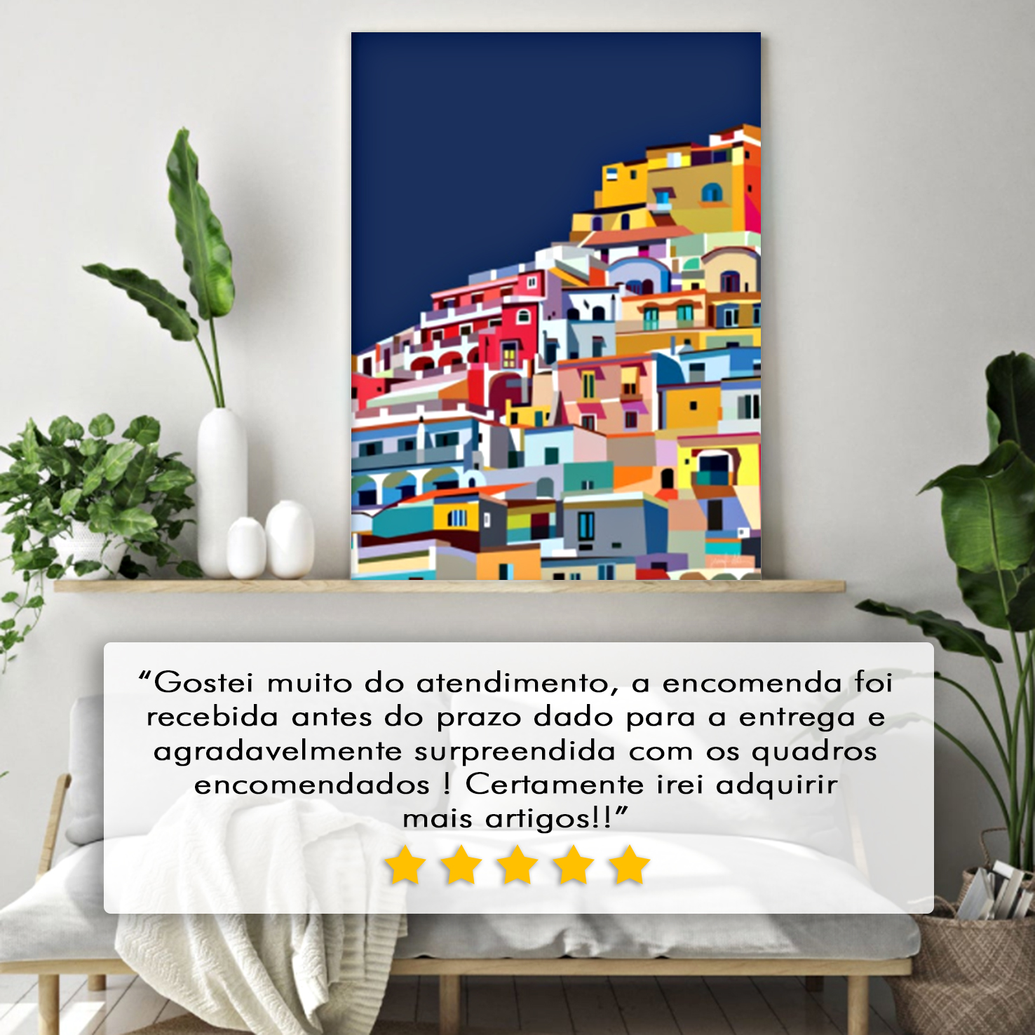 Temos mais de 1000 clientes satisfeitos, e achamos que você deve saber o que eles dizem sobre nós e sobre os nossos quadros. Pode consultar a totalidade dos comentários na nossa página de facebook. https://www.facebook.com/bigpicture.design/reviews/?ref=page_internal Temos Avaliação 5 estrelas!