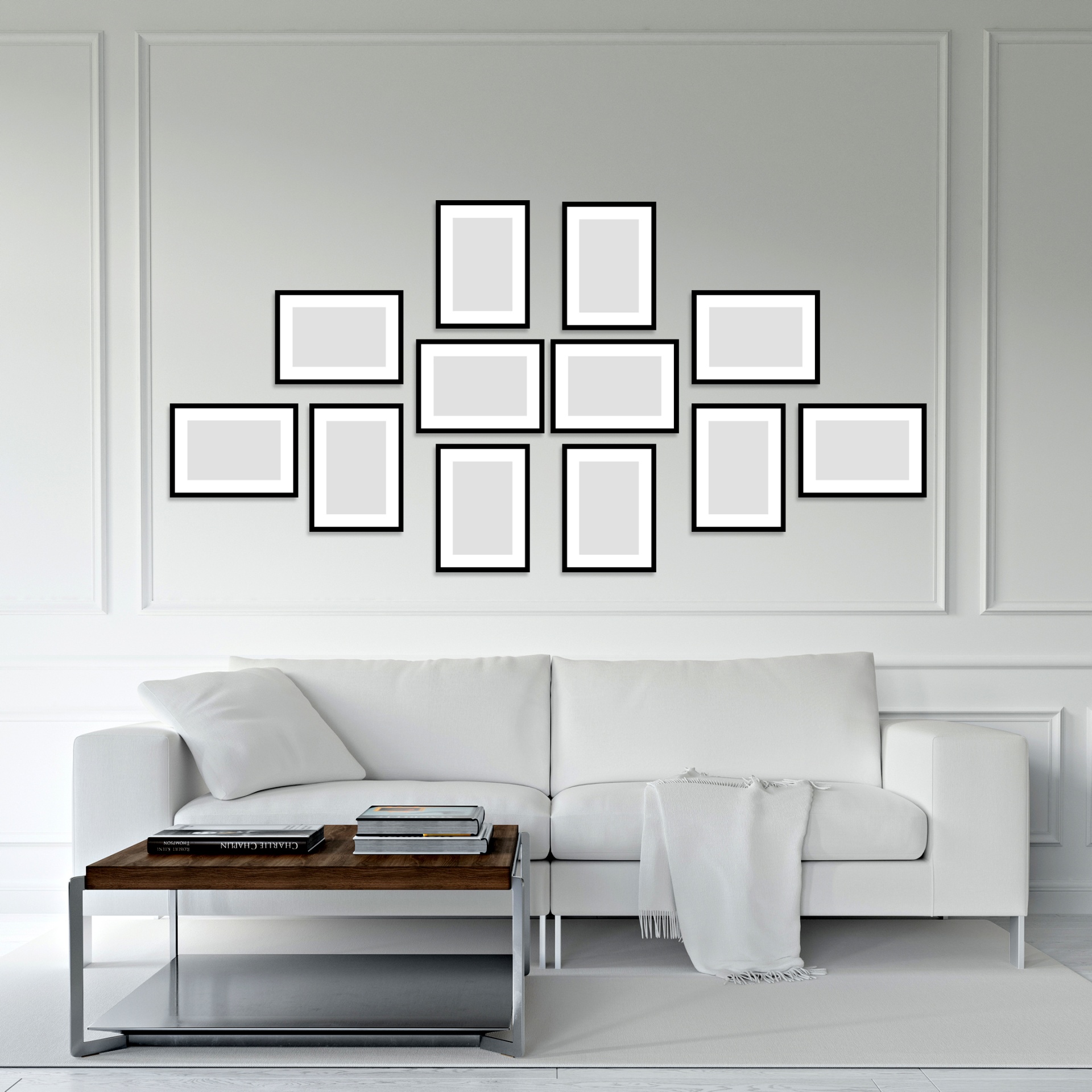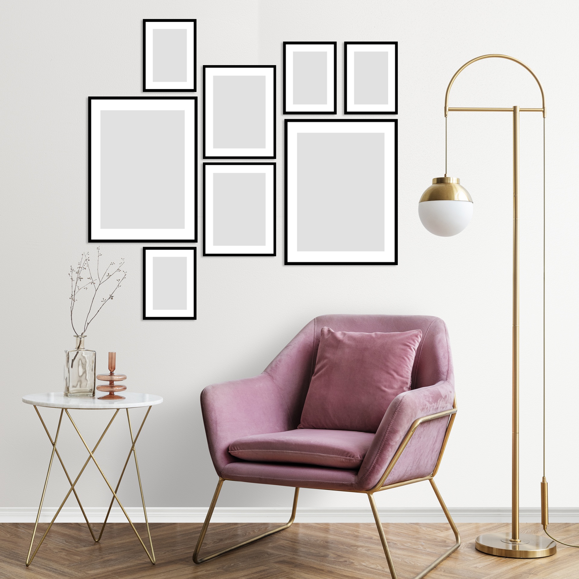 Nota: O tamanho de cada quadro vai depender do espaço total que queira ou tiver disponível para decorar.