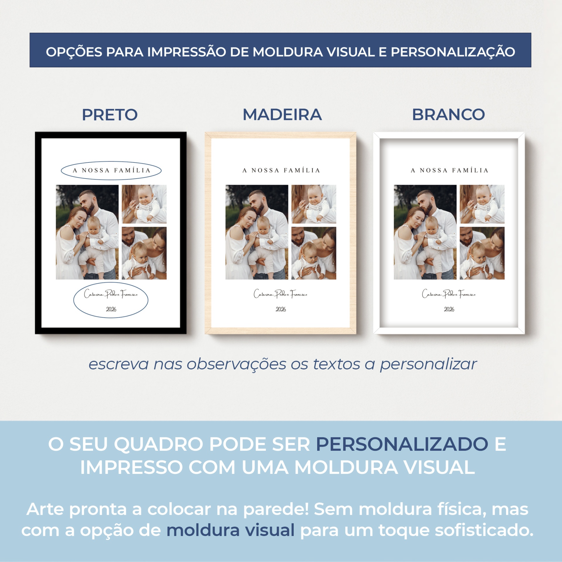 Este Quadro Personalizado é a escolha ideal para quem deseja eternizar os melhores momentos em família. Com um design único e elegante, este quadro apresenta uma coleção de fotos que representam sua família e suas memórias.