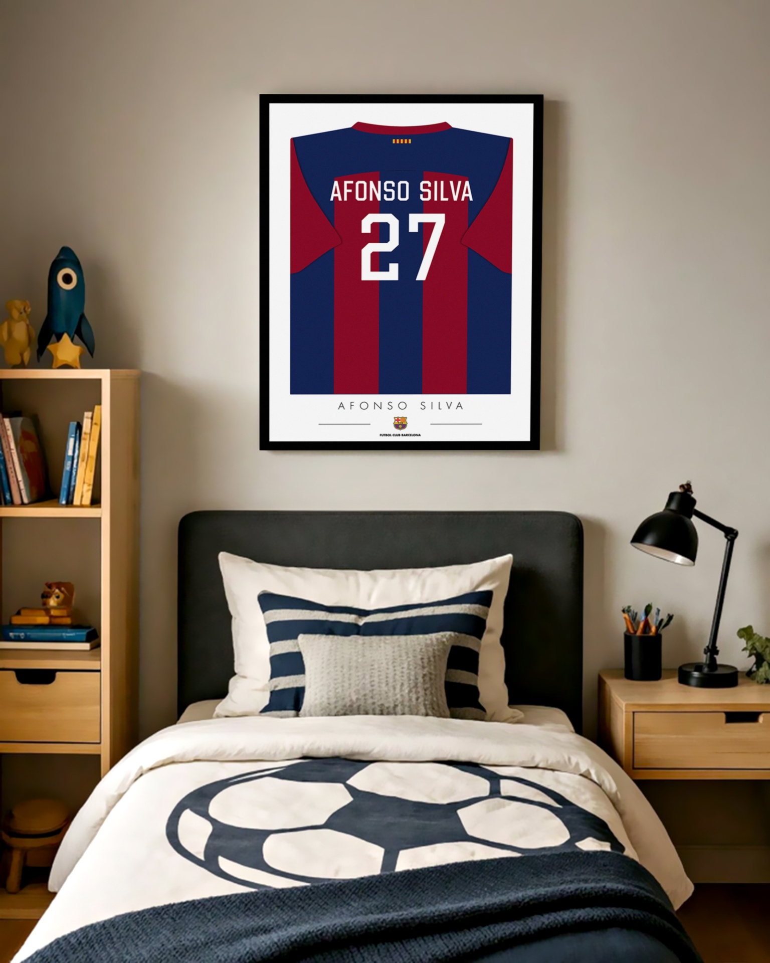 Transforme a paixão pelo futebol em arte com nosso quadro personalizado! Este design exclusivo apresenta a camisola do Barcelona. O presente ideal para os verdadeiros apaixonados por futebol