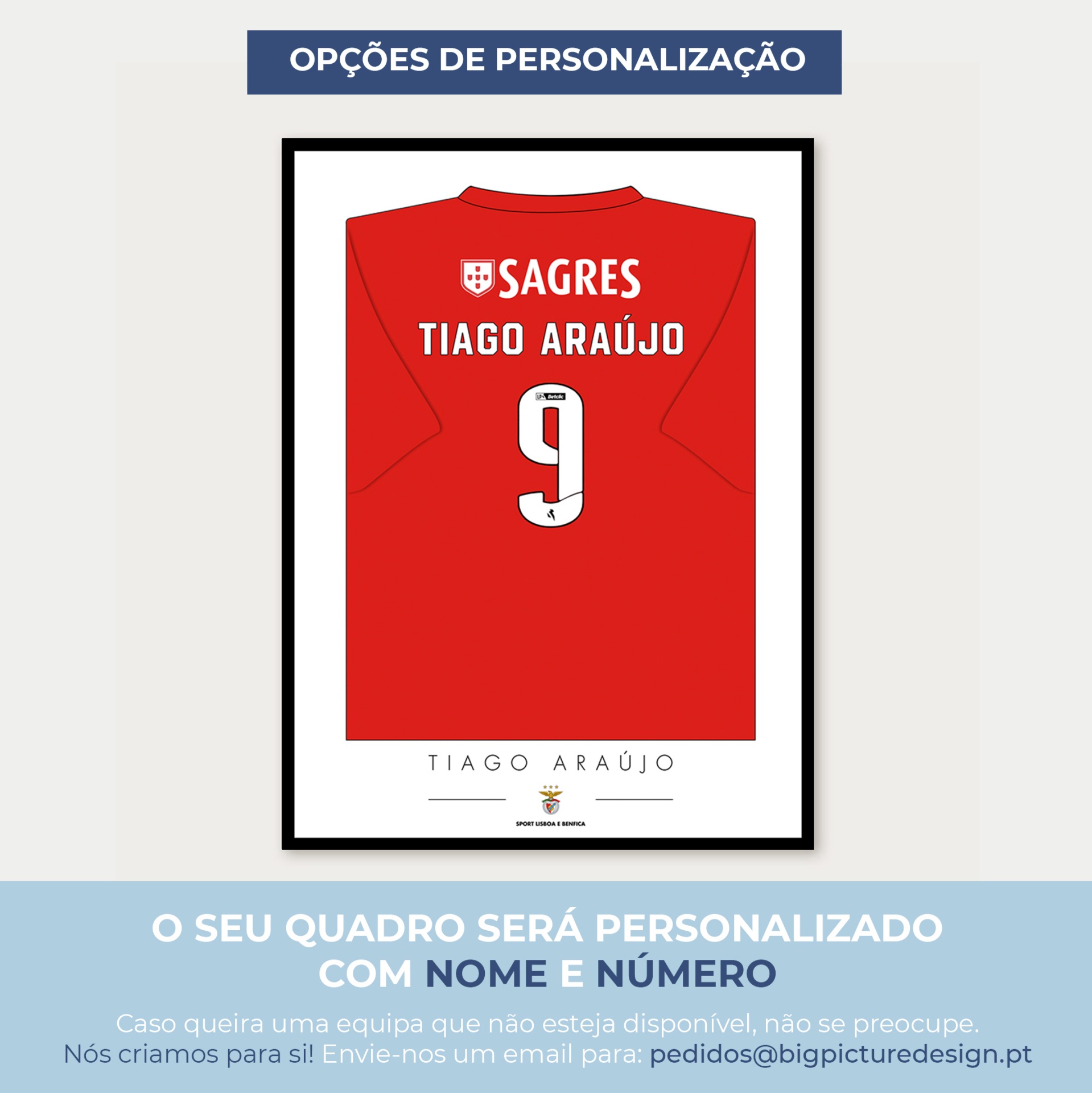 Quadro Personalizado Camisola Futebol - Benfica 2